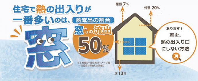 床や壁や天井からも熱は出入りしますが、窓からの熱の出入りはバカになりません。