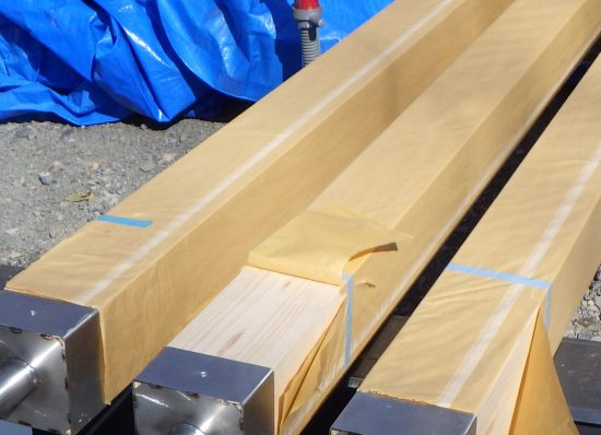 今現在は、カバーで養生されているのでみえませんが、ヒノキの無垢材。
