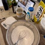 トントンとテーブルの上で叩き、空気を抜きます。
