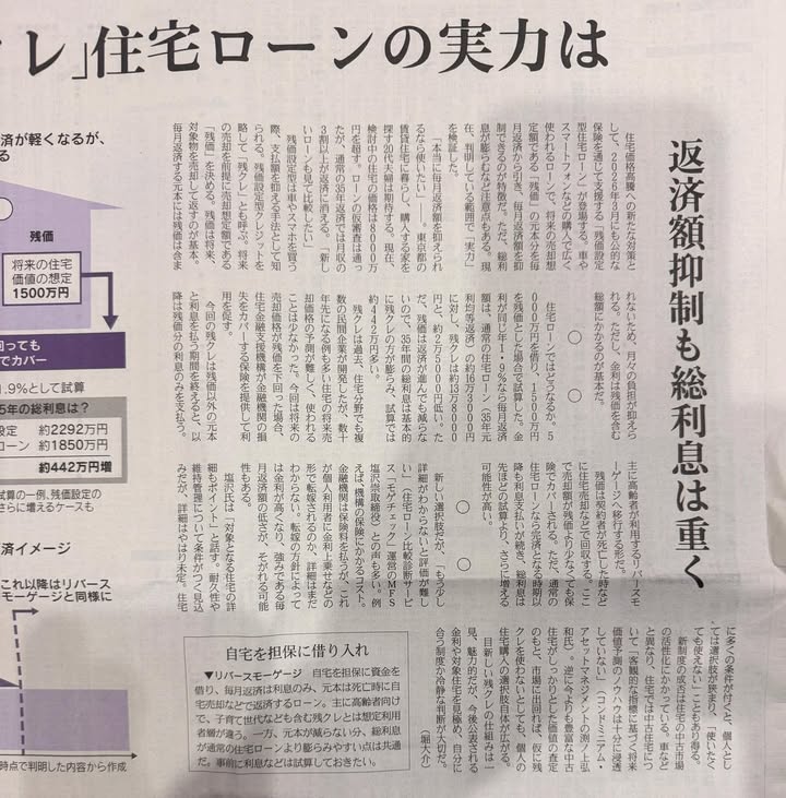 今日の日経新聞に残クレ住宅ローンが解説されていました。