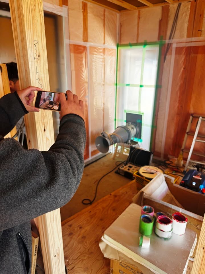 先週は群馬県館林市の現場にて気密測定を行いました。