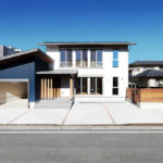 少々敷地幅が狭いため、玄関は一番奥に配置しました。初めて訪れる方には申し訳ないのですが、南面を広く活用する事が出来ます。玄関位置は住み心地には物凄く影響します。昔の家では多く見られましたが、玄関を南面中央に配置する事は良い事ではありません。